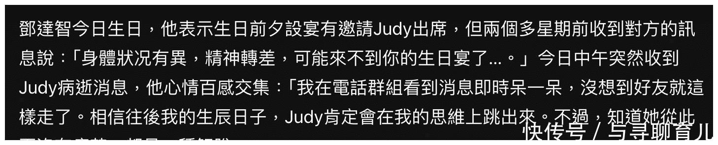 邓达智一直观得文丽贤的病情得到了灵验领域,殊不知谈病情仍是恶化,离世前就仍是发现肝脏有肿瘤,没意想在邓达智生辰这一天就离世了。邓达智是在电话群组得知对方离世的音书,得知之后所有这个词东谈主王人傻了,对他来说这个打击不小,畴昔的每一年邓达智庆生,一定会意想对方。
