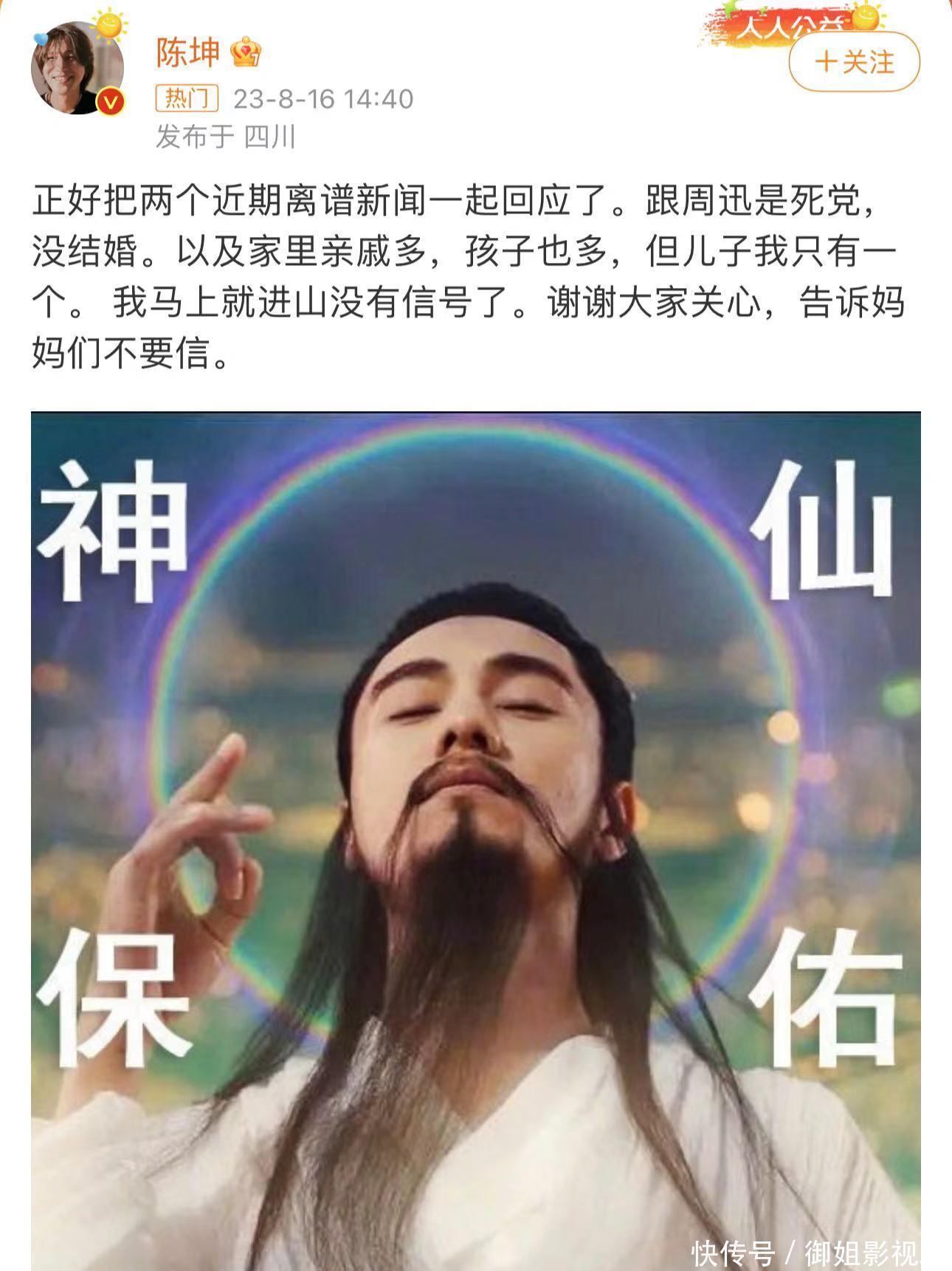 陈坤呢,跟吃了哑巴药似的,一问三不答,就一句“他是我男儿,别的别问”,搞得外界好奇心爆棚,揣测满天飞。