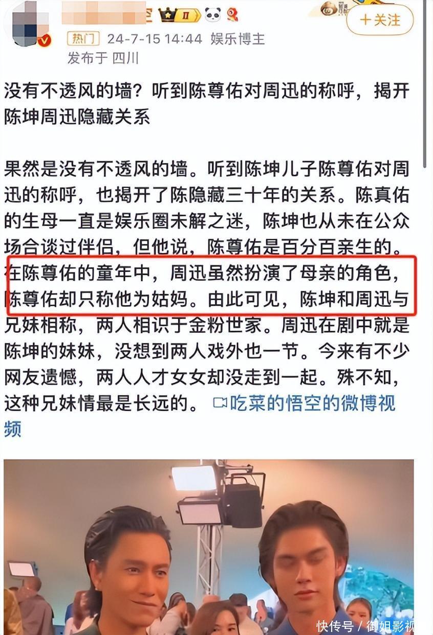 更有文娱号在7月发文曝光陈尊佑喊周迅为“姑姑”!